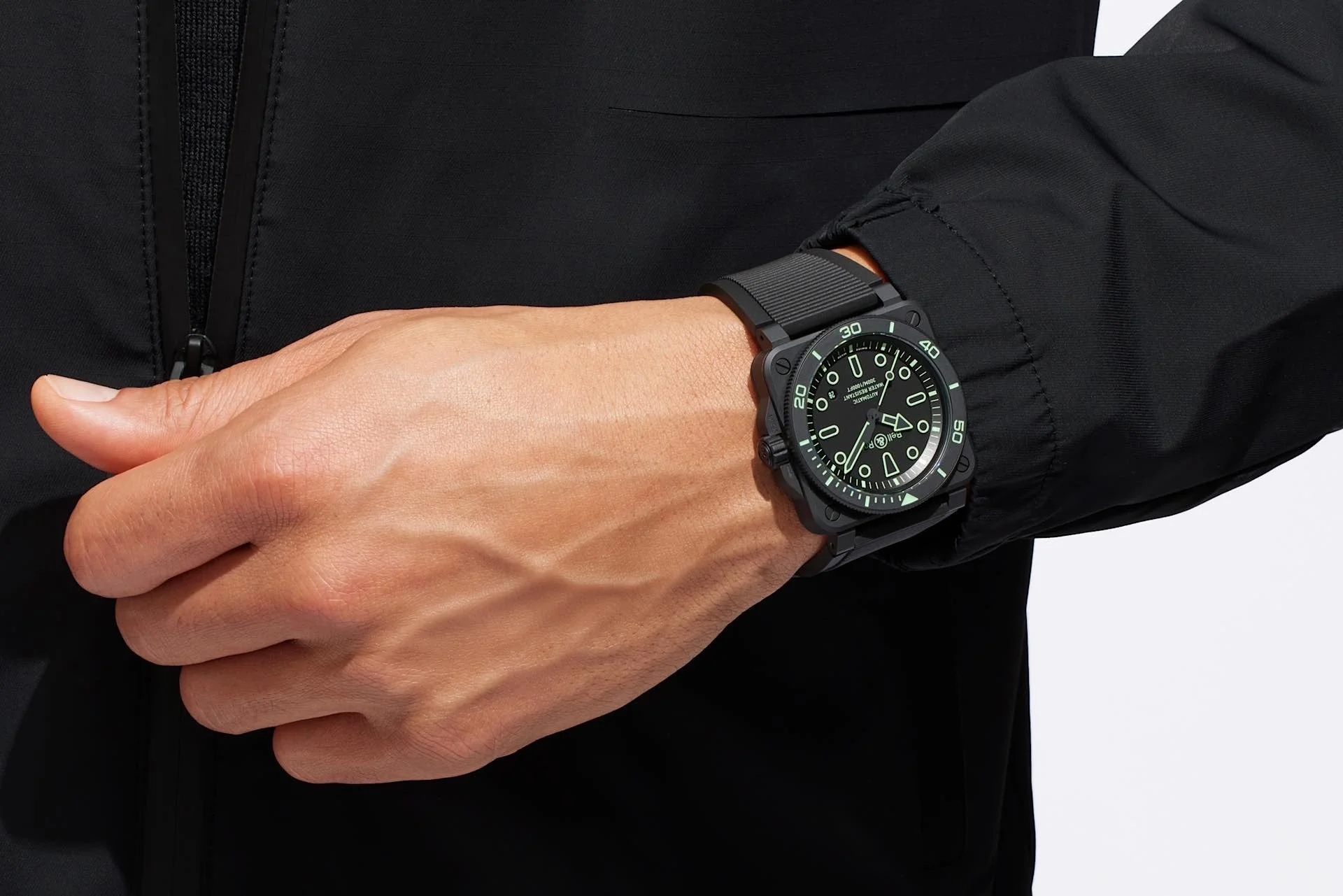 Die Bell & Ross BR-03 Diver Lum Outline am Arm.