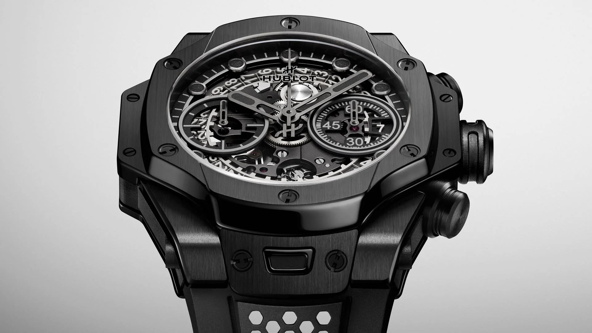 Hublot Big Bang Unico SR_A: All-Black-Design mit Keramikgehäuse und Wabenstruktur im Armband.