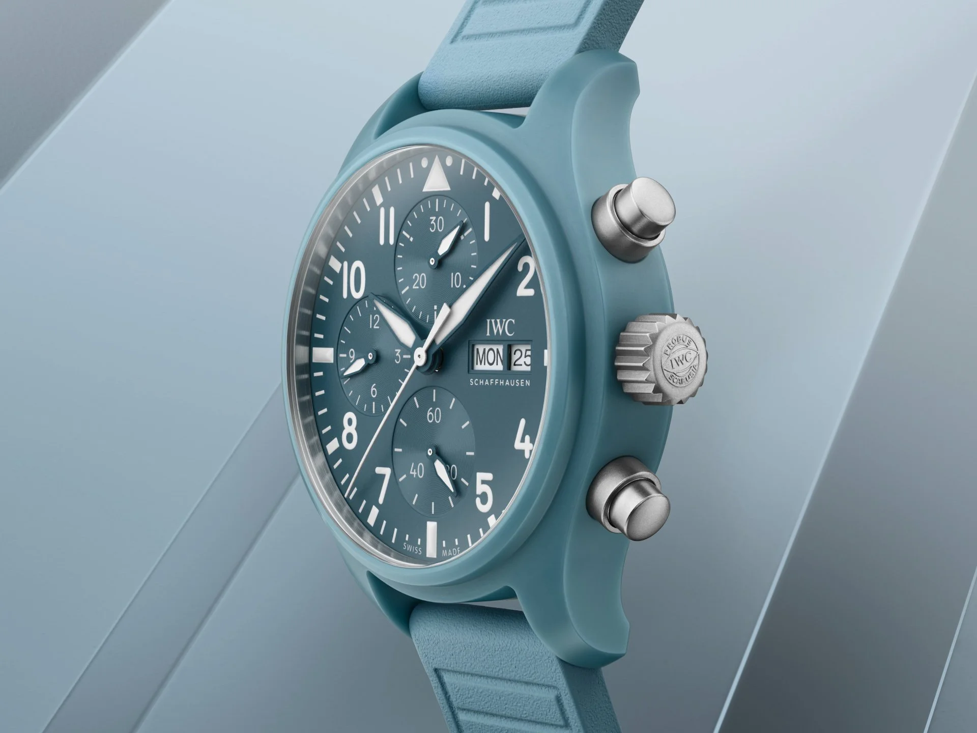 Die Schweizer Manufaktur IWC stellt einen limitierten Fliegerchronographen mit einem Hightech-Keramik-Gehäuse in neuem hellblauen Farbton vor. Inspiriert wurde die Farbe von der Kleidung der Top-Gun-Flugausbilder.