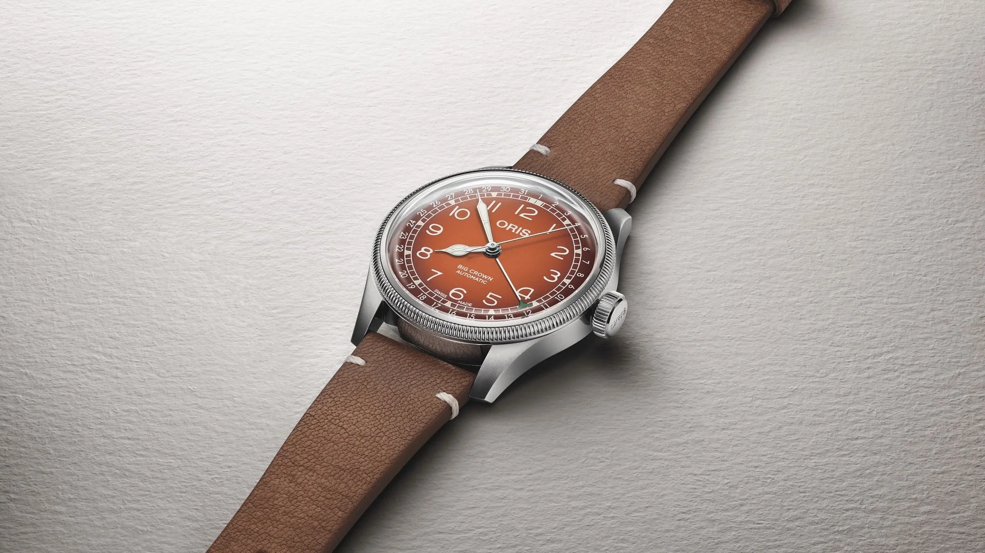Die Schweizer Marken Oris und Cervo Volante haben erneut zusammengearbeitet und stellen eine Big Crown Pointer Date mit orange-braunem Zifferblatt mit Farbverlauf und einem Armband aus Hirschleder vor.