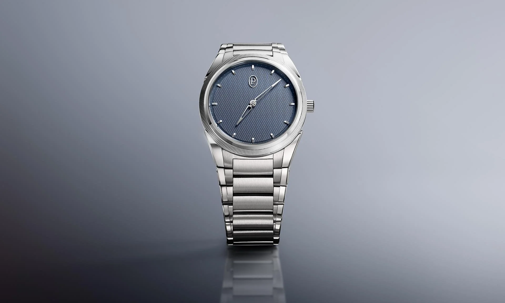 Farbe und Guillochierung des Zifferblatts der Parmigiani Tonda PF 36mm Automatic Stone Blue erinnern an die Oberfläche des Meeres.