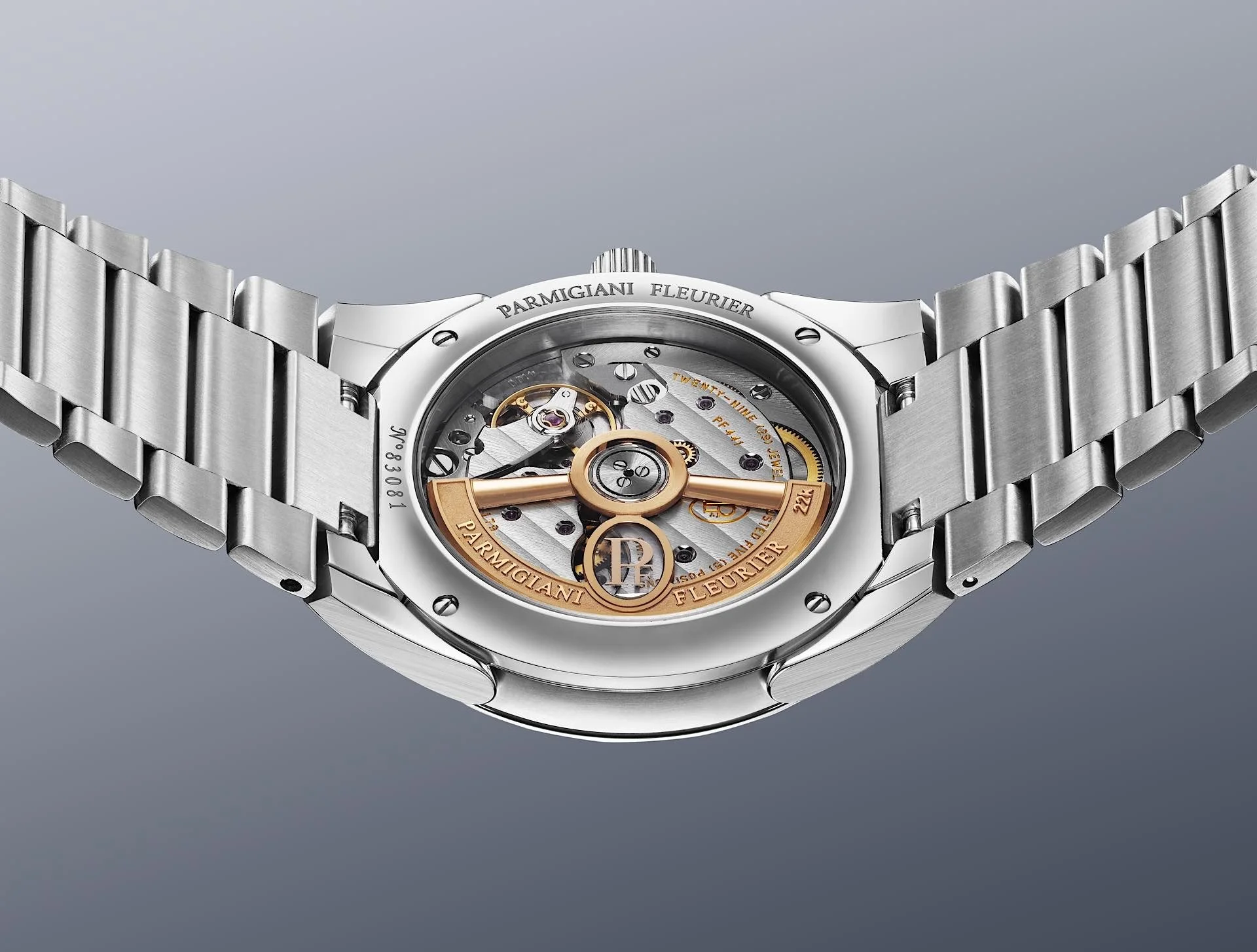 Parmigiani ist bekannt für elegante Uhren mit fein verzierten eigenen Werken. Das trifft auch auf diese Neuheit zu. Die Tonda PF bringt mit ihrem integrierten Metallband und den klaren Linien aber auch Modernität und puristisches Design an den Arm.
