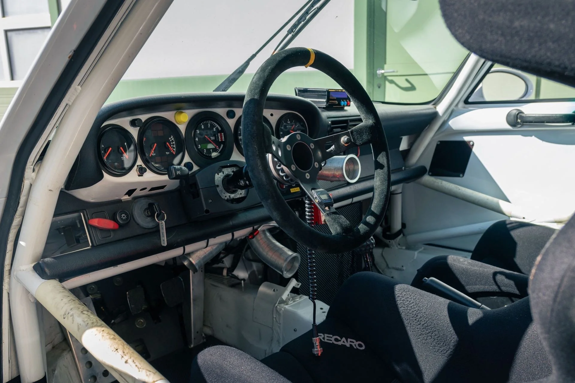 Porsche 993 GT2 R Innenraum: Instrumente und Schlüssel wie die Serie aber auch Käfig, Rennsitze und Löschanlage.