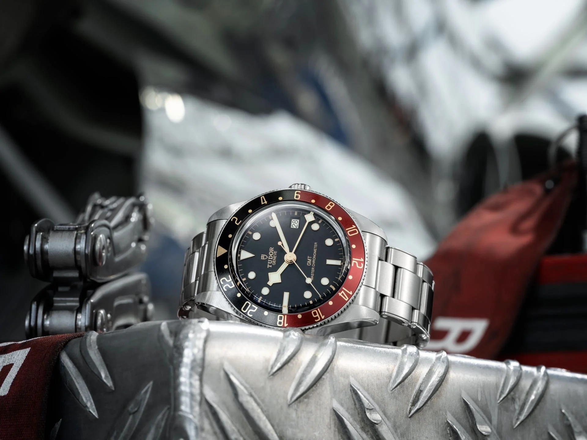 Die Flying-Bull-Piloten tragen die Tudor Black Bay GMT S&G mit Manufakturwerk und zweiter Zeitzone.